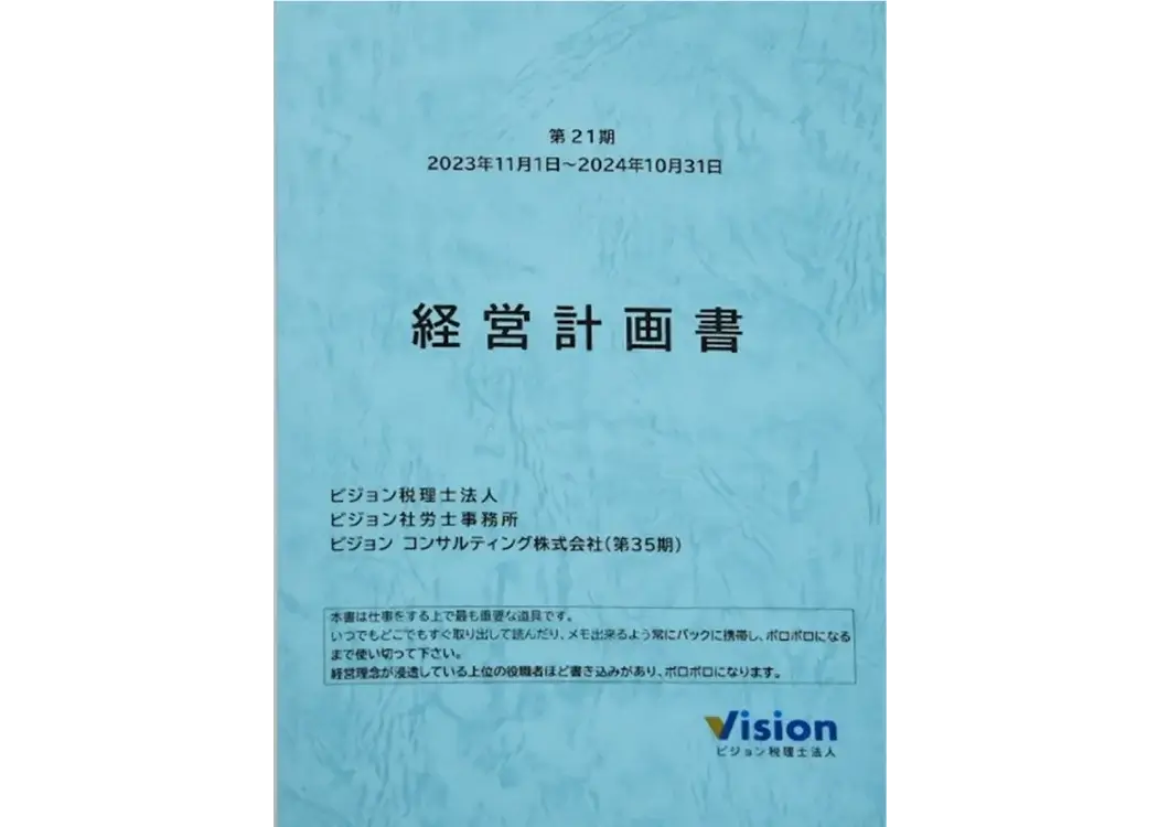 ビジョン税理士法人では、その作成をすべての顧問先企業様にお勧めし、具体的な内容づくりを指導しています。実際に経営計画書を作成した企業の大半が、黒字化するなど業績を大きく伸ばしています。