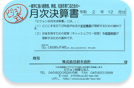 「これからどうすればいいの?」について、私共と一緒に考える資料がビジョン式「月次決算書」です。